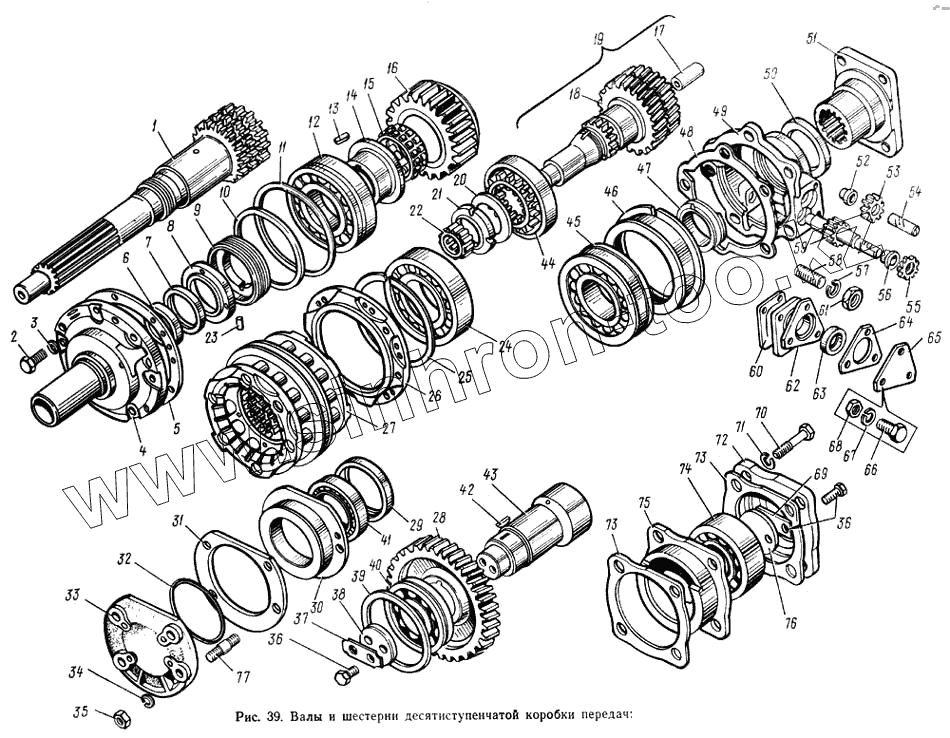 Каталог запасных частей к технике: ЗИЛ-133ГЯ. Валы и шестерни десятиступенчатой коробки передач