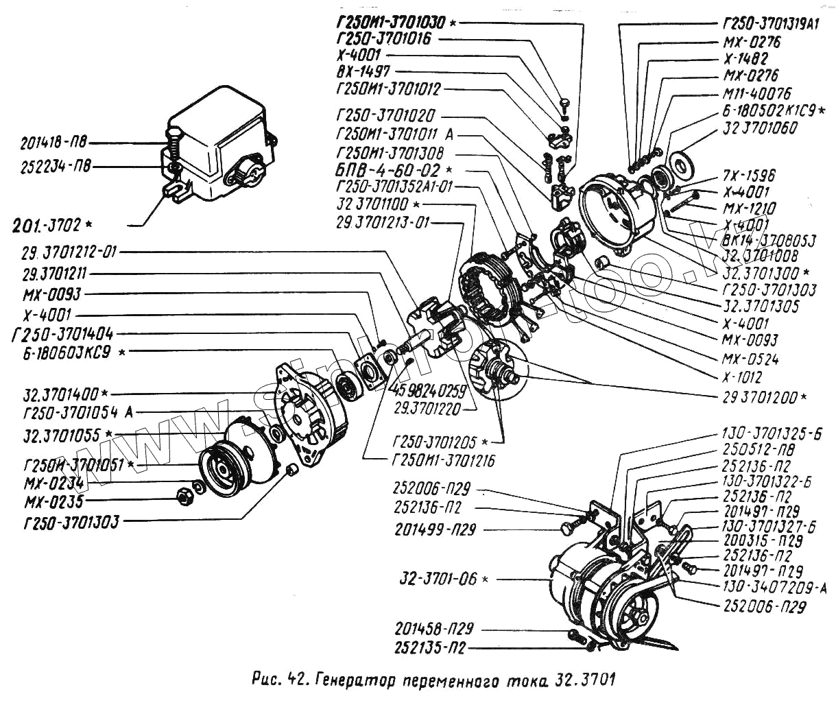 Каталог запасных частей к технике: ЗИЛ-431410 (130). Генератор переменного тока 32.3701