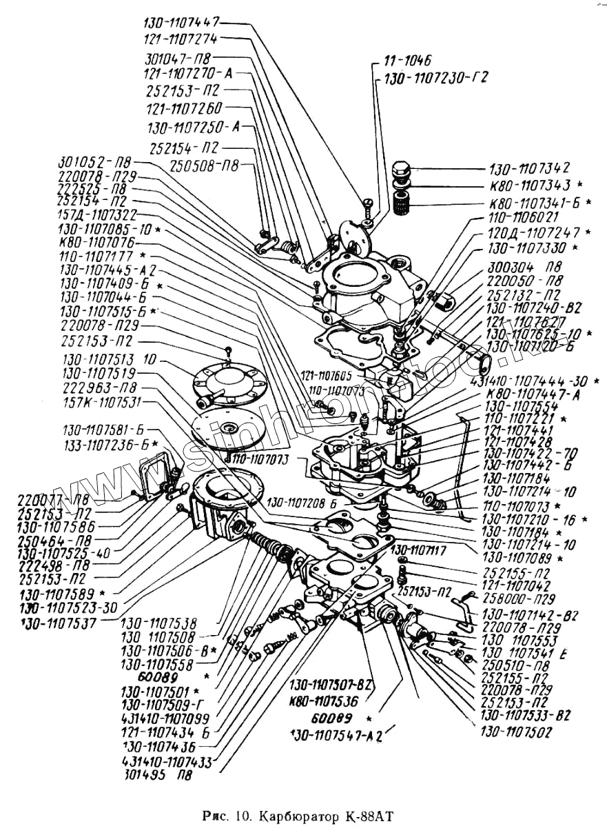Каталог запасных частей к технике: ЗИЛ-431410 (130). Карбюратор К-88АТ