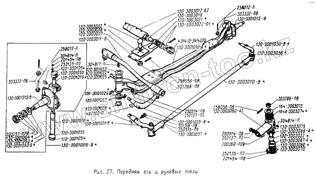 Каталог запасных частей к технике: ЗИЛ-431410 (130). Передняя ось и рулевые тяги