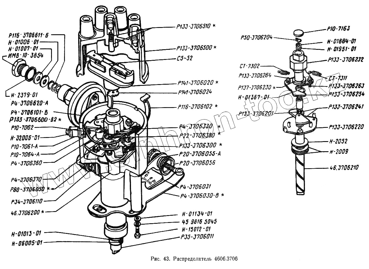 Каталог запасных частей к технике: ЗИЛ-431410 (130). Распределитель 4606.3706