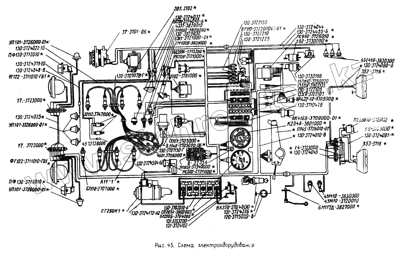 Каталог запасных частей к технике: ЗИЛ-431410 (130). Схема электрооборудования