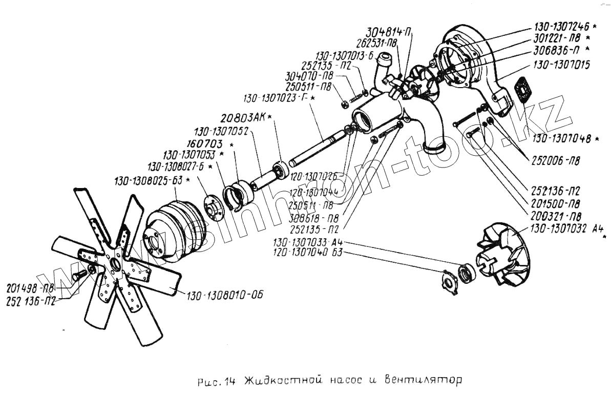 Каталог запасных частей к технике: ЗИЛ-431410 (130). Жидкостный насос и вентилятор