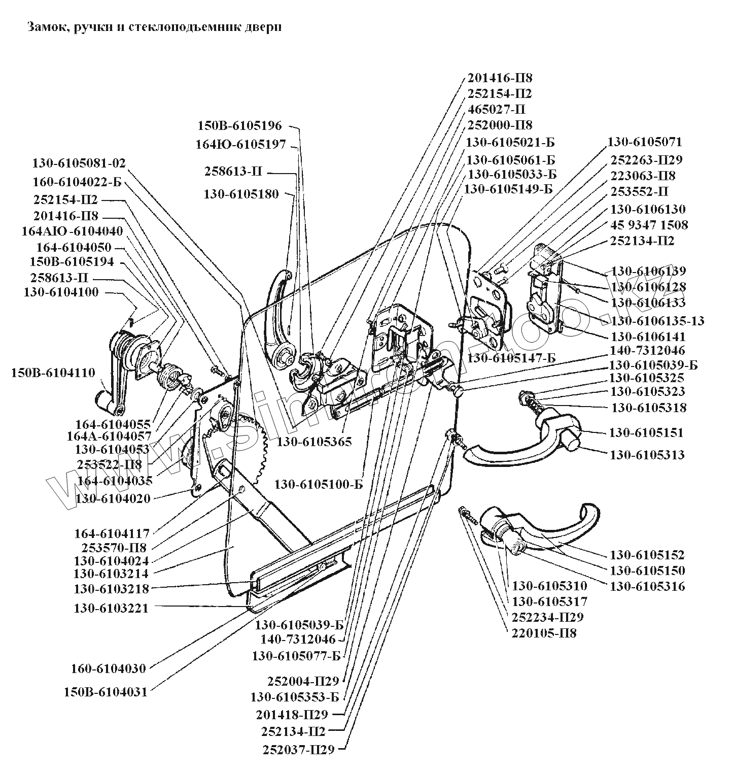Каталог запасных частей к технике: ЗИЛ-431416. Двери\Замок, ручки и стеклоподъемник двери