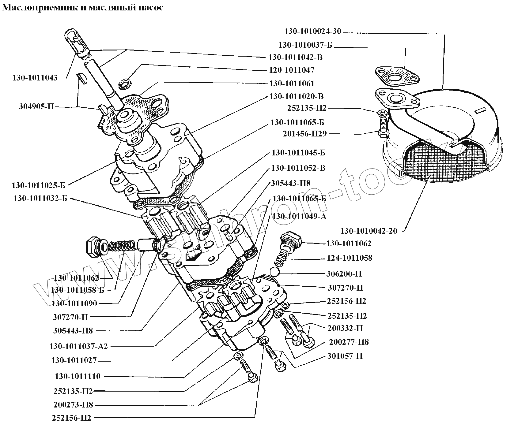 Каталог запасных частей к технике: ЗИЛ-431416. Двигатель\Маслоприемник и масляный насос