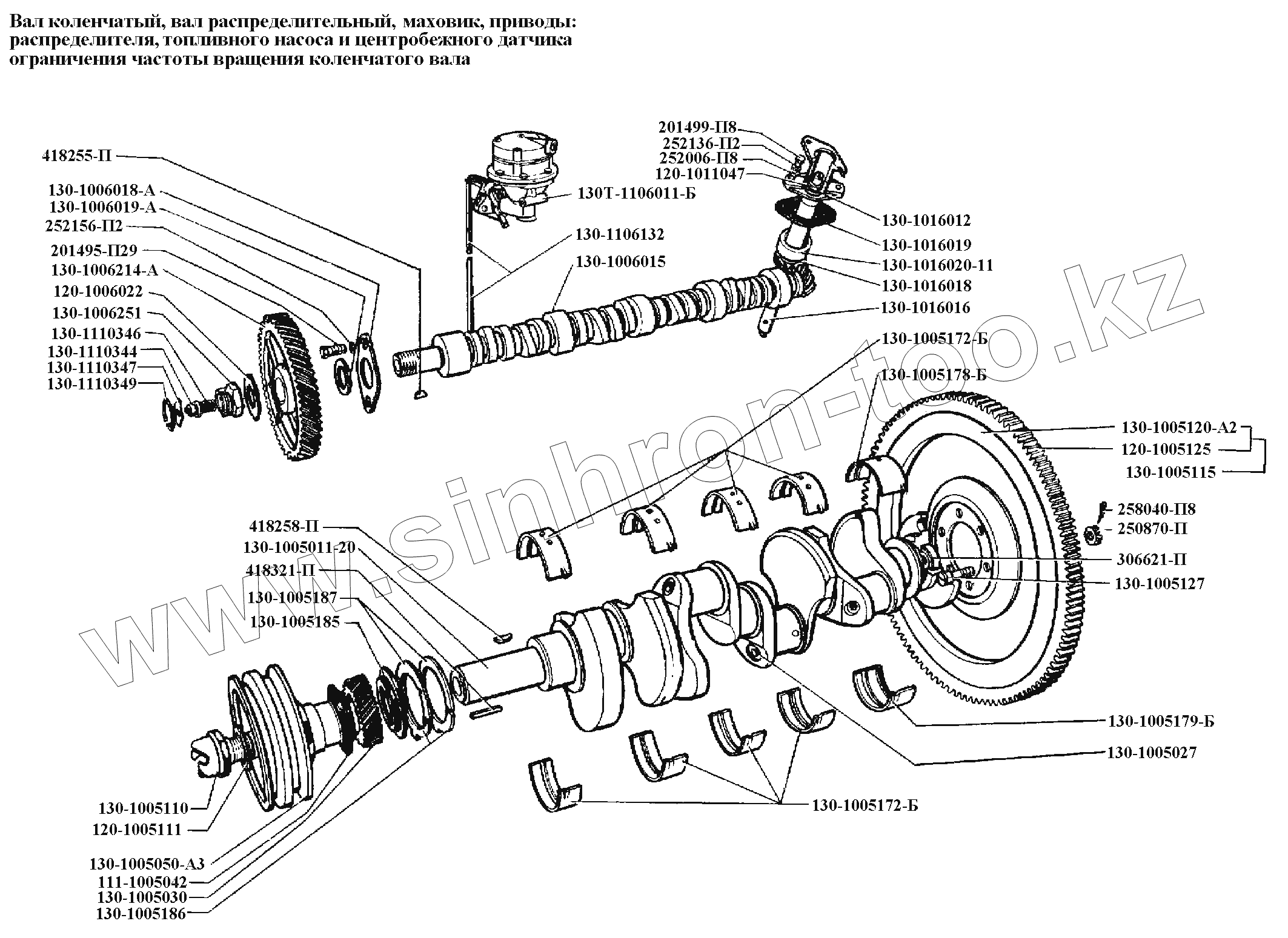 Каталог запасных частей к технике: ЗИЛ-431416. Двигатель\Вал коленчатый, вал распределительный, маховик, приводы