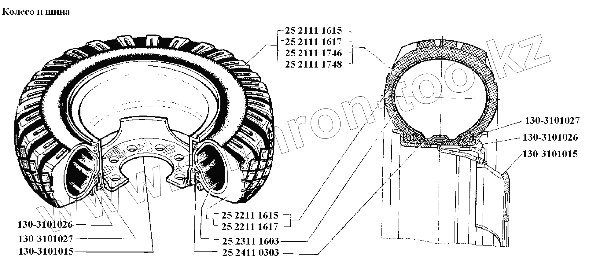 Каталог запасных частей к технике: ЗИЛ-431416. Колеса и ступицы\Колесо и шина