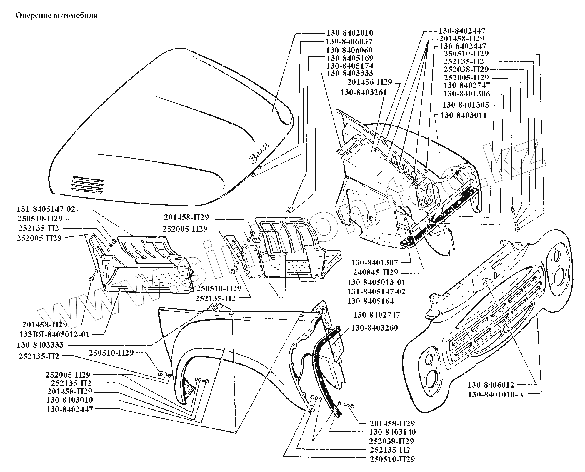 Каталог запасных частей к технике: ЗИЛ-431416. Оперение\Оперение автомобиля