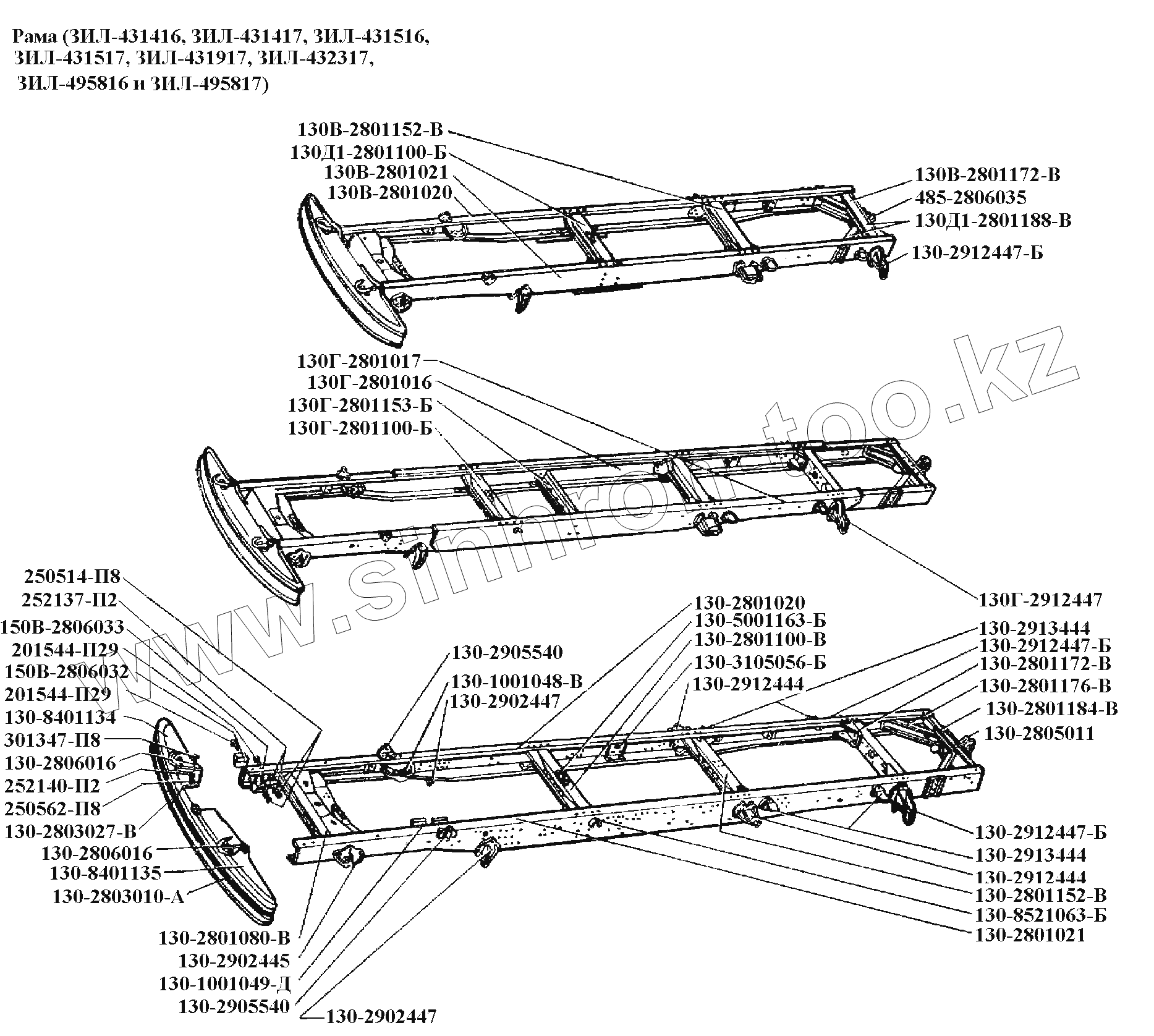 Каталог запасных частей к технике: ЗИЛ-431416. Рама\Рама