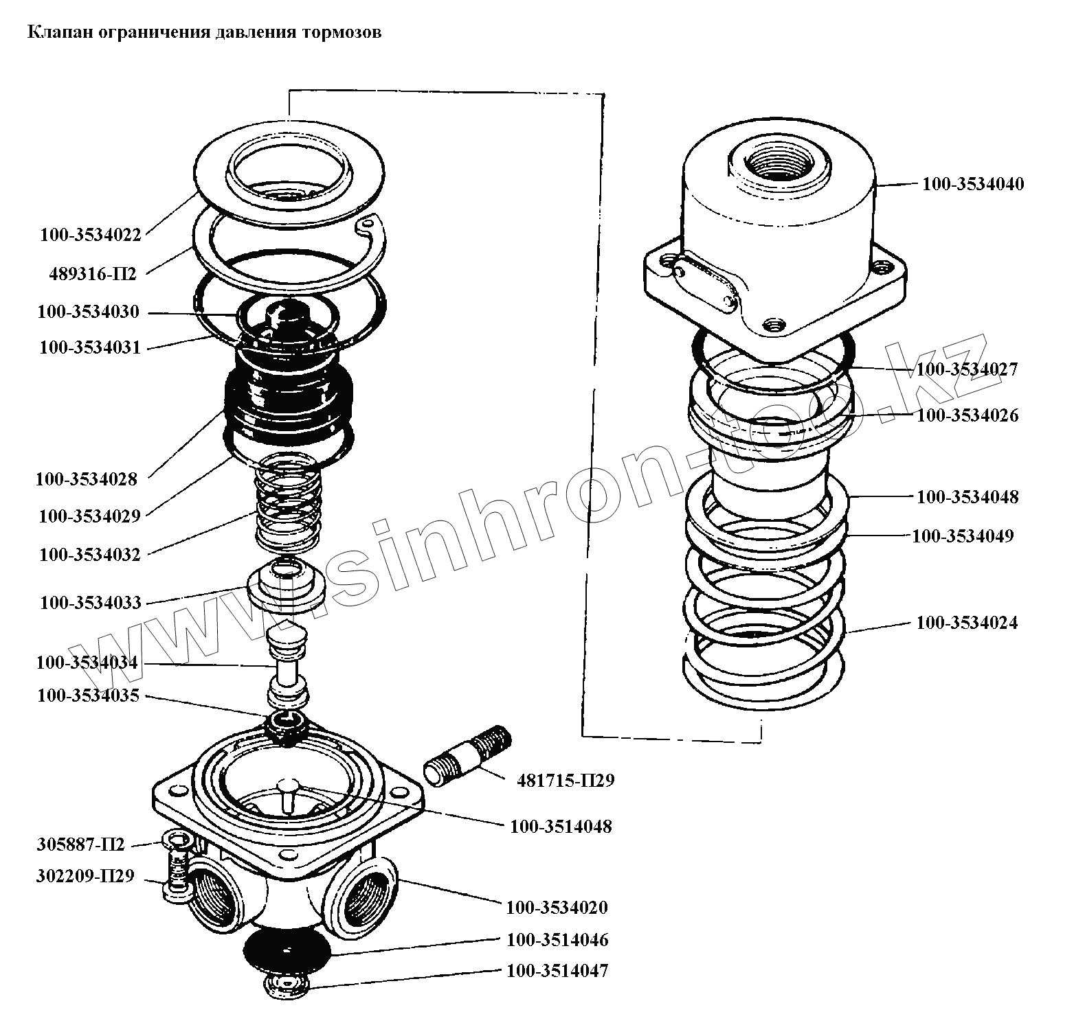 Каталог запасных частей к технике: ЗИЛ-431416. Тормоза\Клапан ограничения давления тормозов