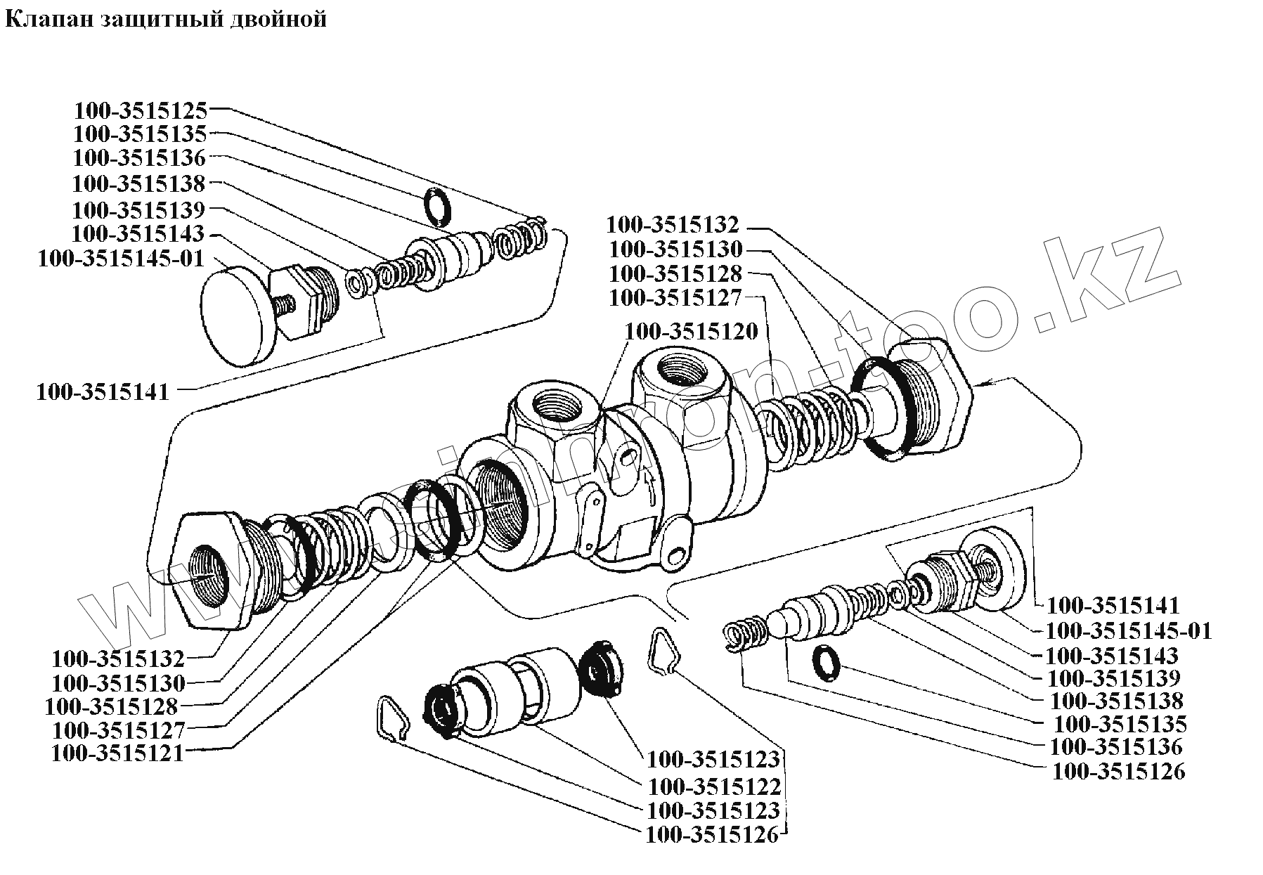 Каталог запасных частей к технике: ЗИЛ-431416. Тормоза\Клапан защитный двойной