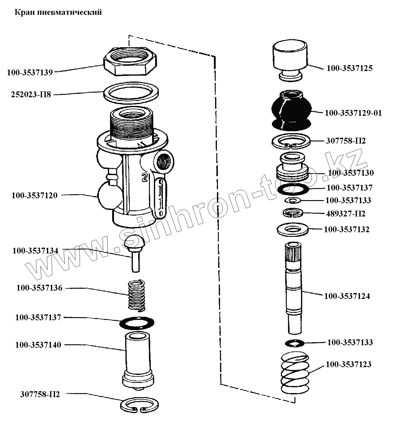 Каталог запасных частей к технике: ЗИЛ-431416. Тормоза\Кран пневматический