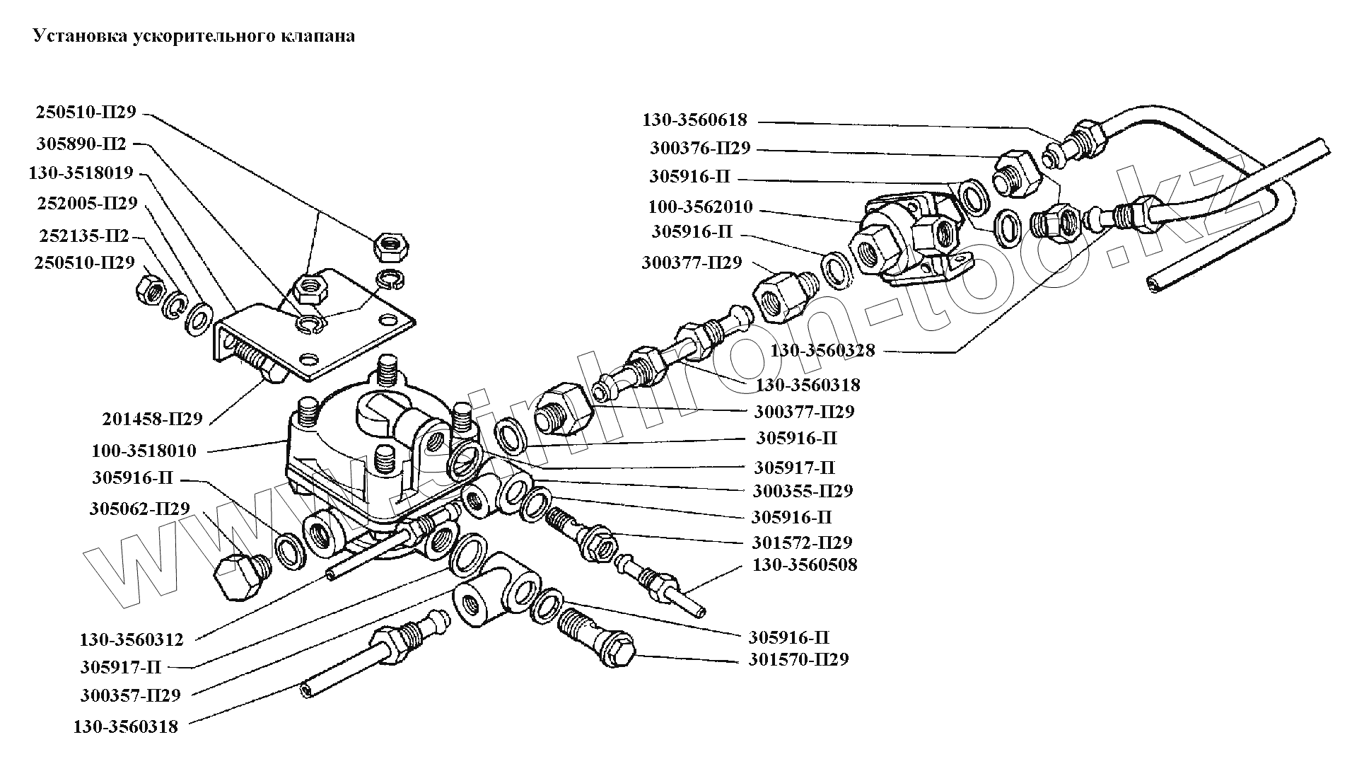 Каталог запасных частей к технике: ЗИЛ-431416. Тормоза\Установка ускорительного клапана