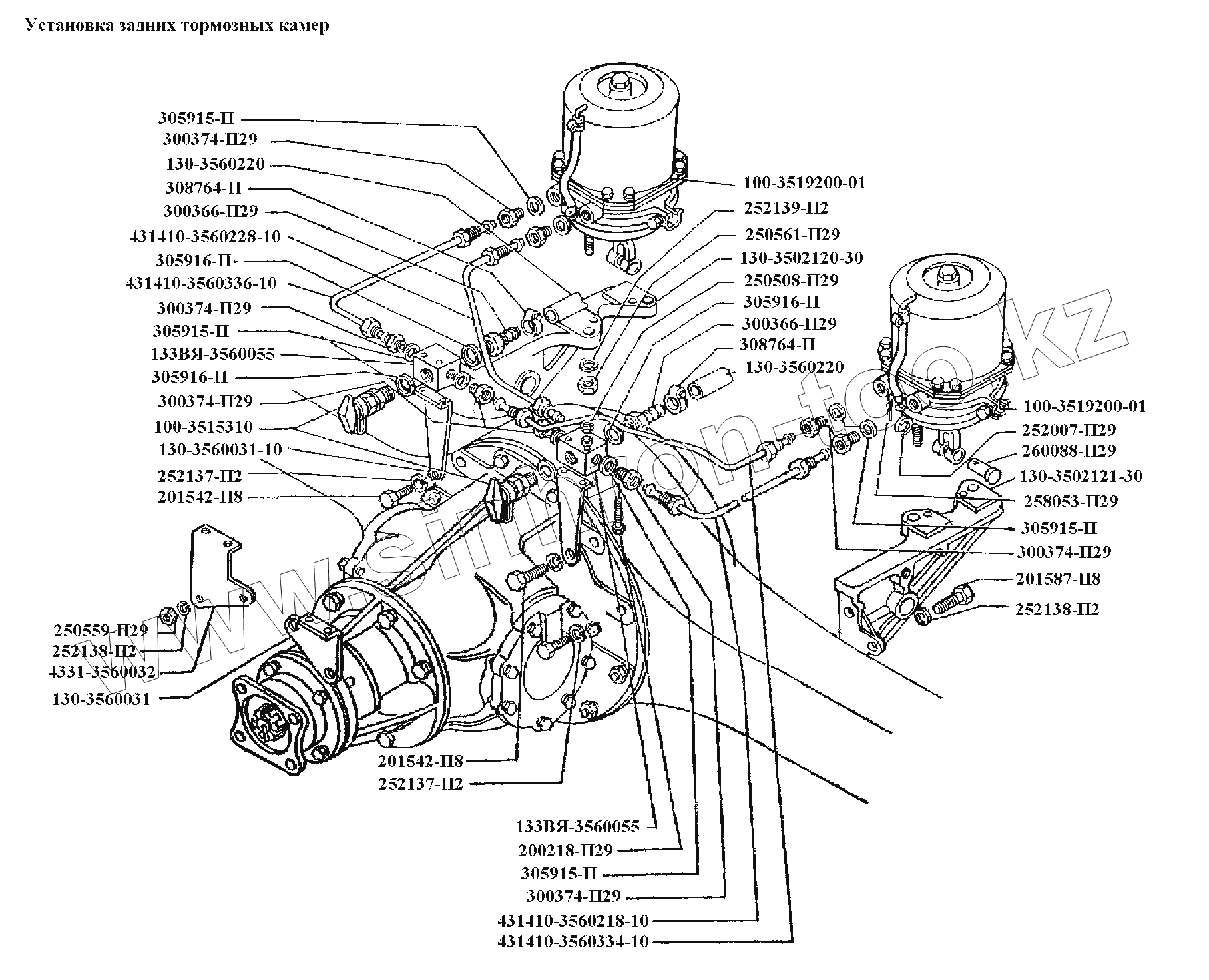Каталог запасных частей к технике: ЗИЛ-431416. Тормоза\Установка задних тормозных камер