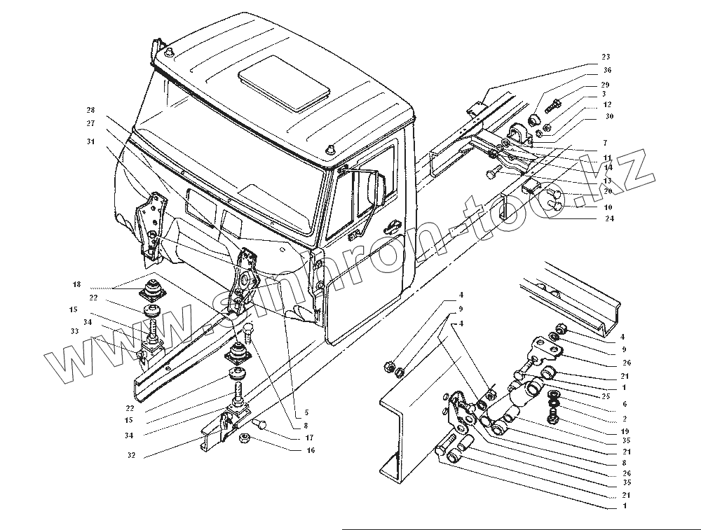 | 36 | 4331-5001106 | Буфер заднего крепления кабины |