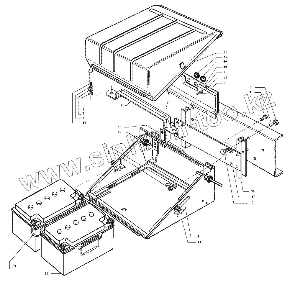 Каталог запасных частей к технике: ЗИЛ-43272Н, 43273Н. Установка аккумуляторных батарей