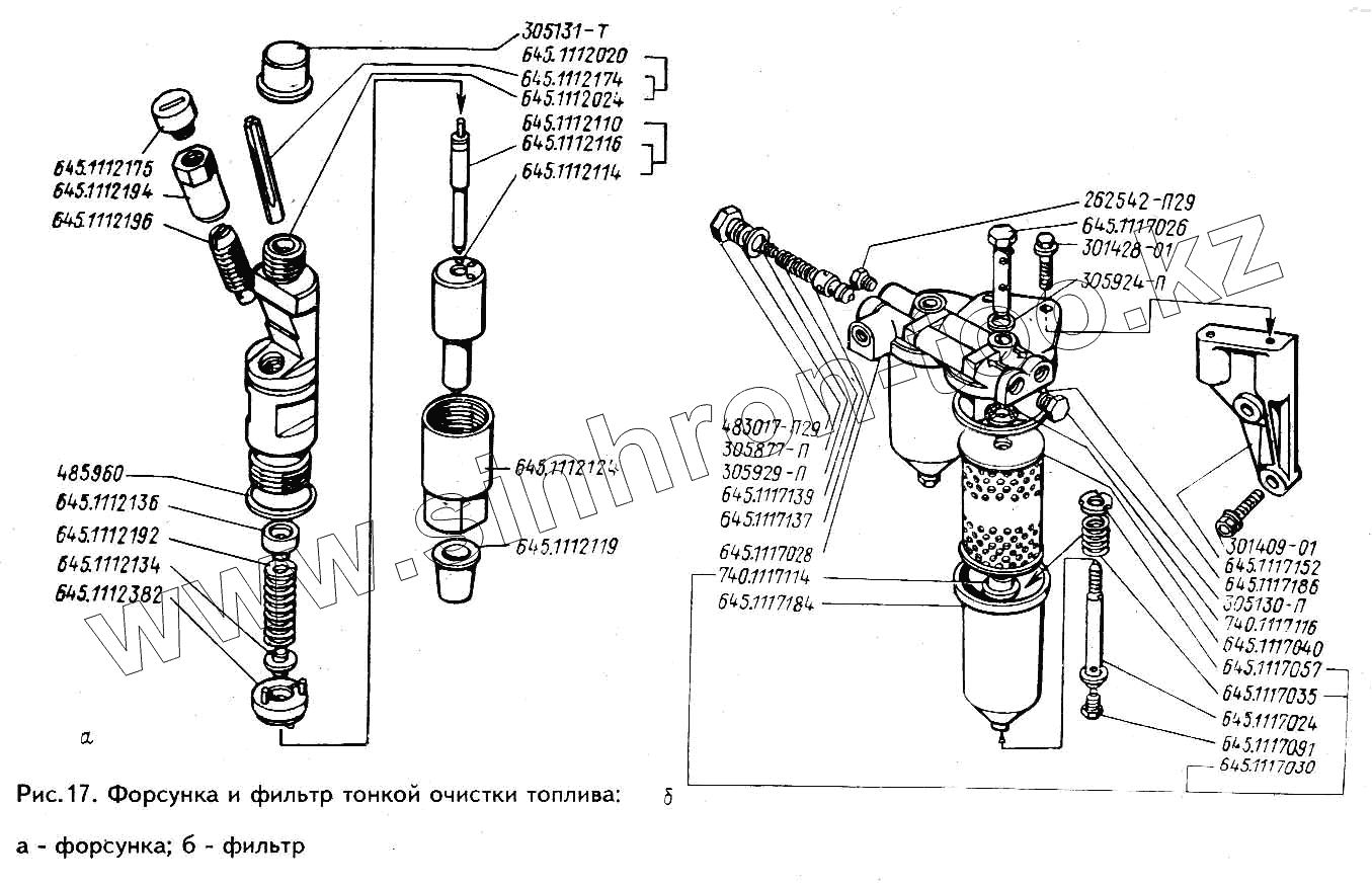 Каталог запасных частей к технике: ЗИЛ-433100. Форсунка и фильтр тонкой очистки топлива