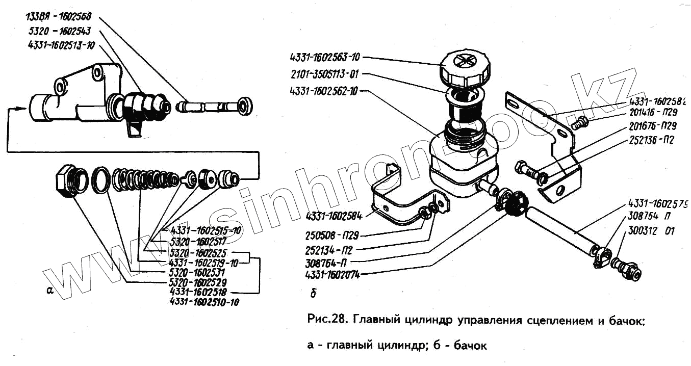 Каталог запасных частей к технике: ЗИЛ-433100. Главный цилиндр управления сцеплением и бачок