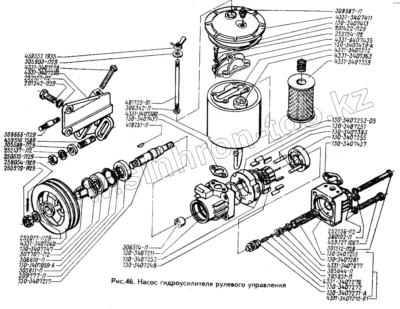 Каталог запасных частей к технике: ЗИЛ-433100. Насос гидроусилителя рулевого управления