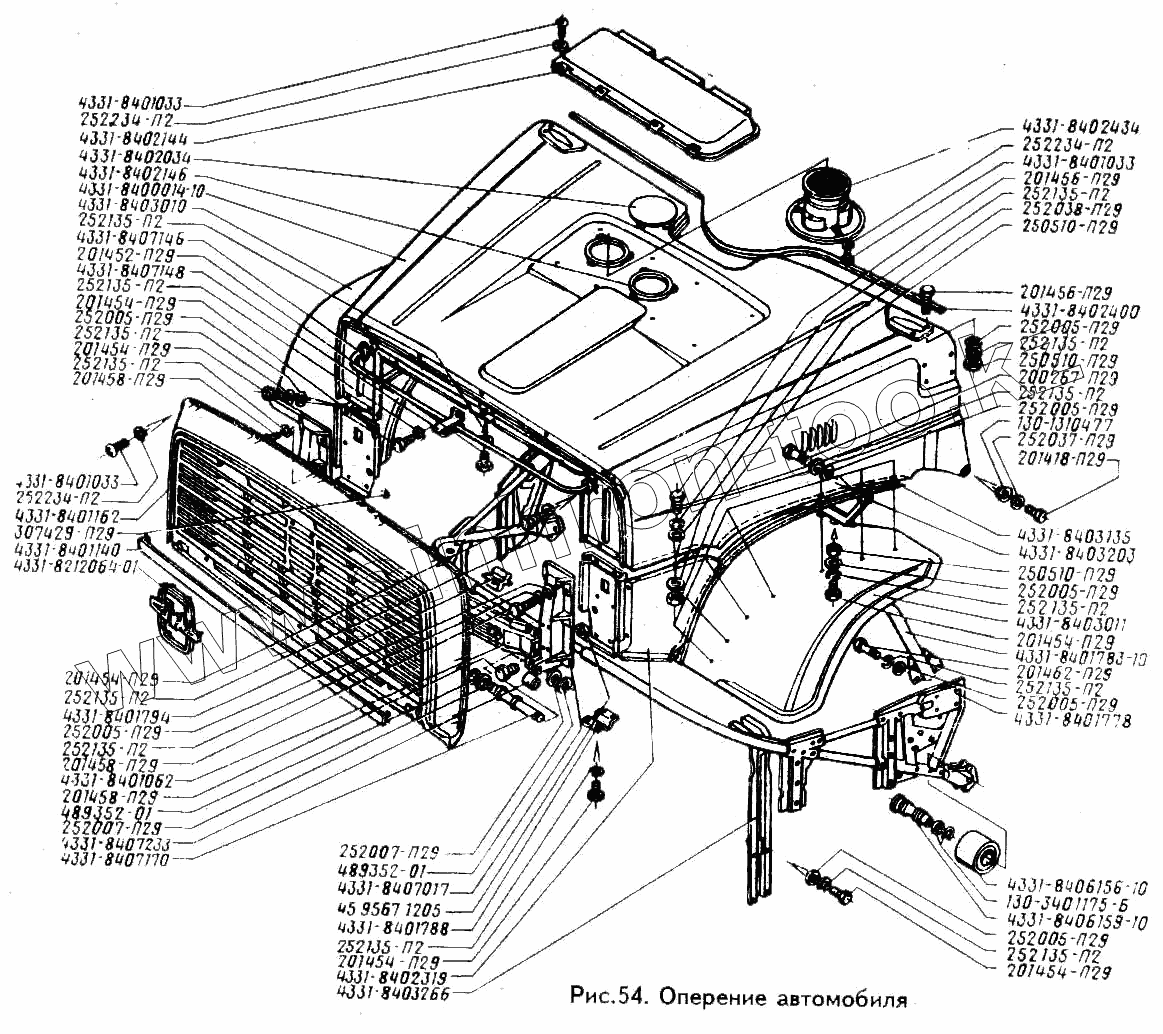 Каталог запасных частей к технике: ЗИЛ-433100. Оперение автомобиля