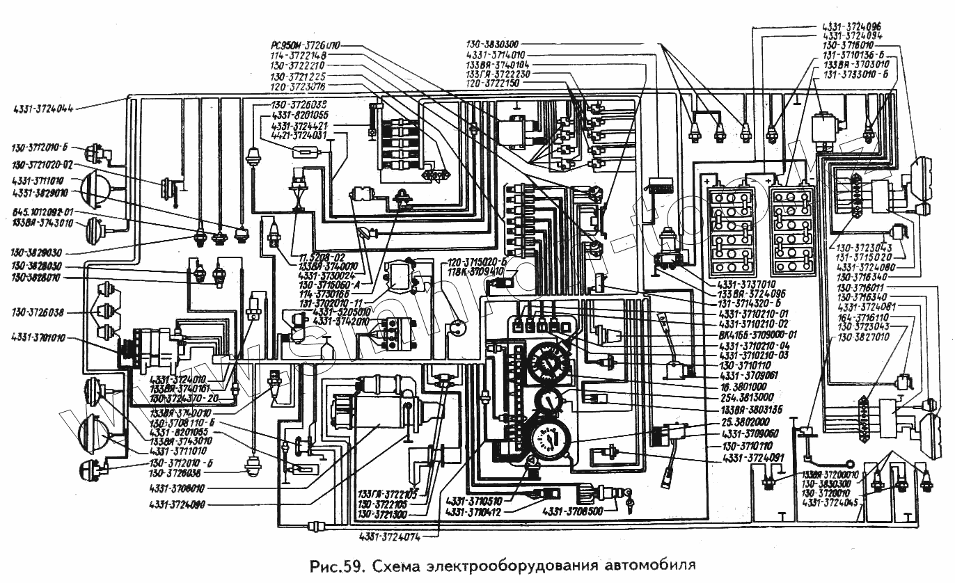 Каталог запасных частей к технике: ЗИЛ-433100. Схема электрооборудования автомобиля