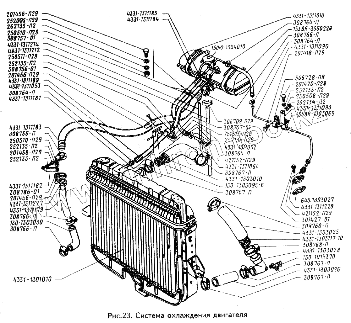 Каталог запасных частей к технике: ЗИЛ-433100. Система охлаждения двигателя