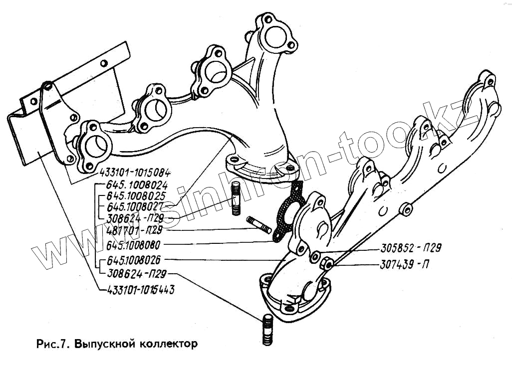 Каталог запасных частей к технике: ЗИЛ-433100. Выпускной коллектор