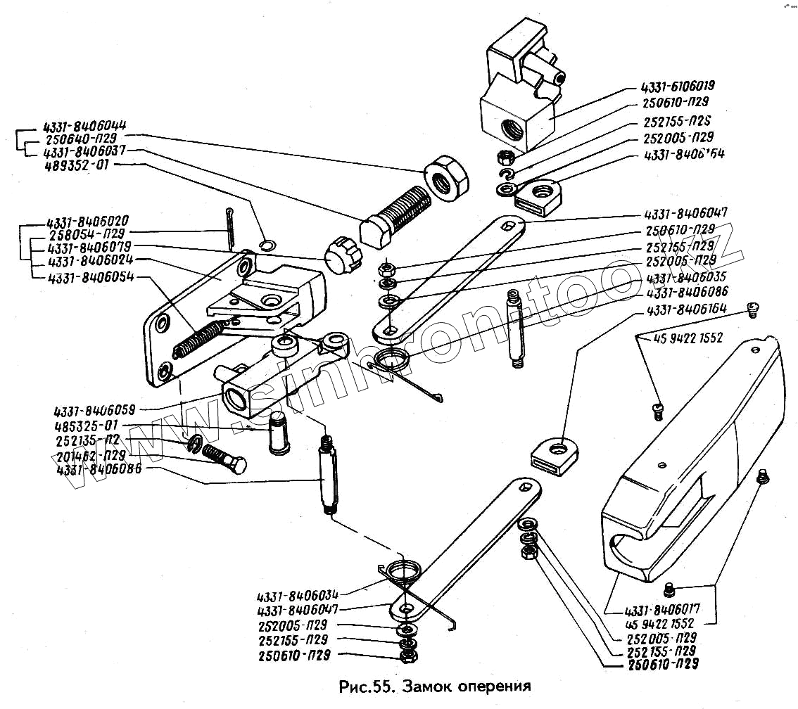 Каталог запасных частей к технике: ЗИЛ-433100. Замок оперения