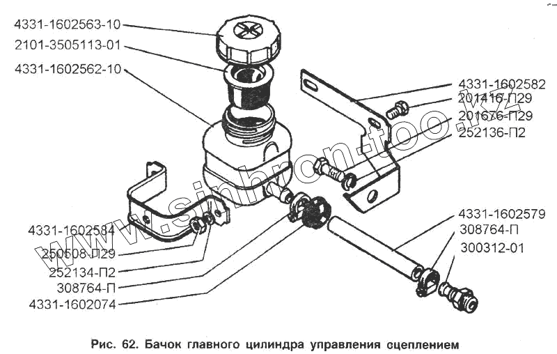 Каталог запасных частей к технике: ЗИЛ-433100. Бачок главного цилиндра управления сцеплением