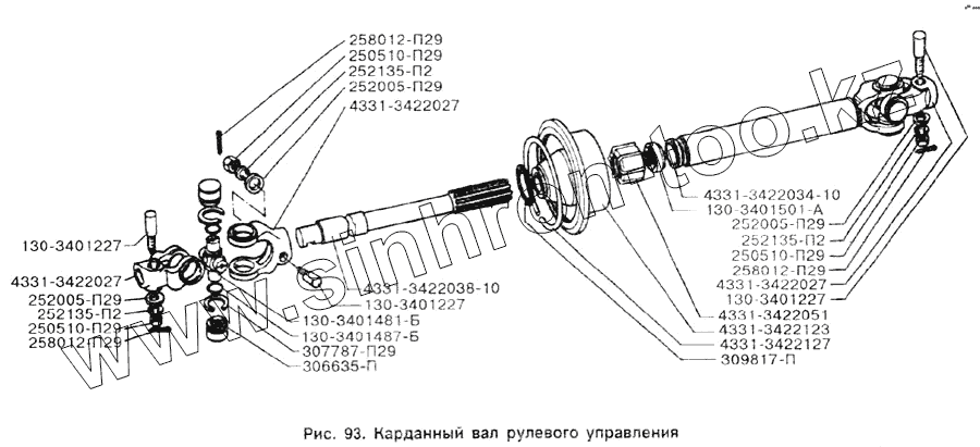 Каталог запасных частей к технике: ЗИЛ-433100. Карданный вал рулевого управления