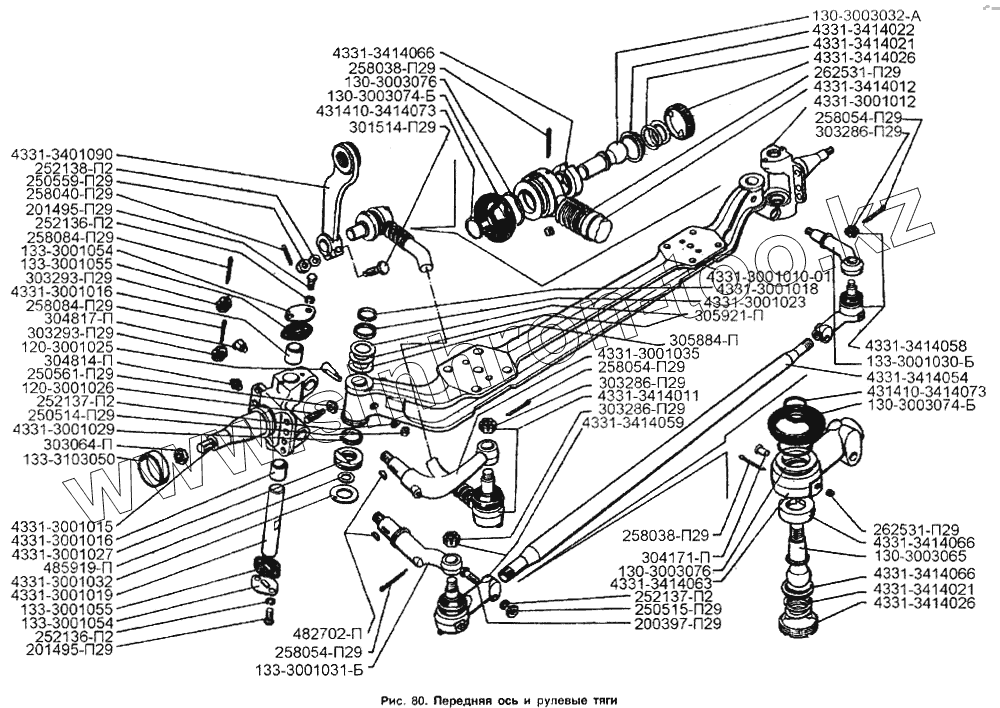 Каталог запасных частей к технике: ЗИЛ-433100. Передняя ось и рулевые тяги