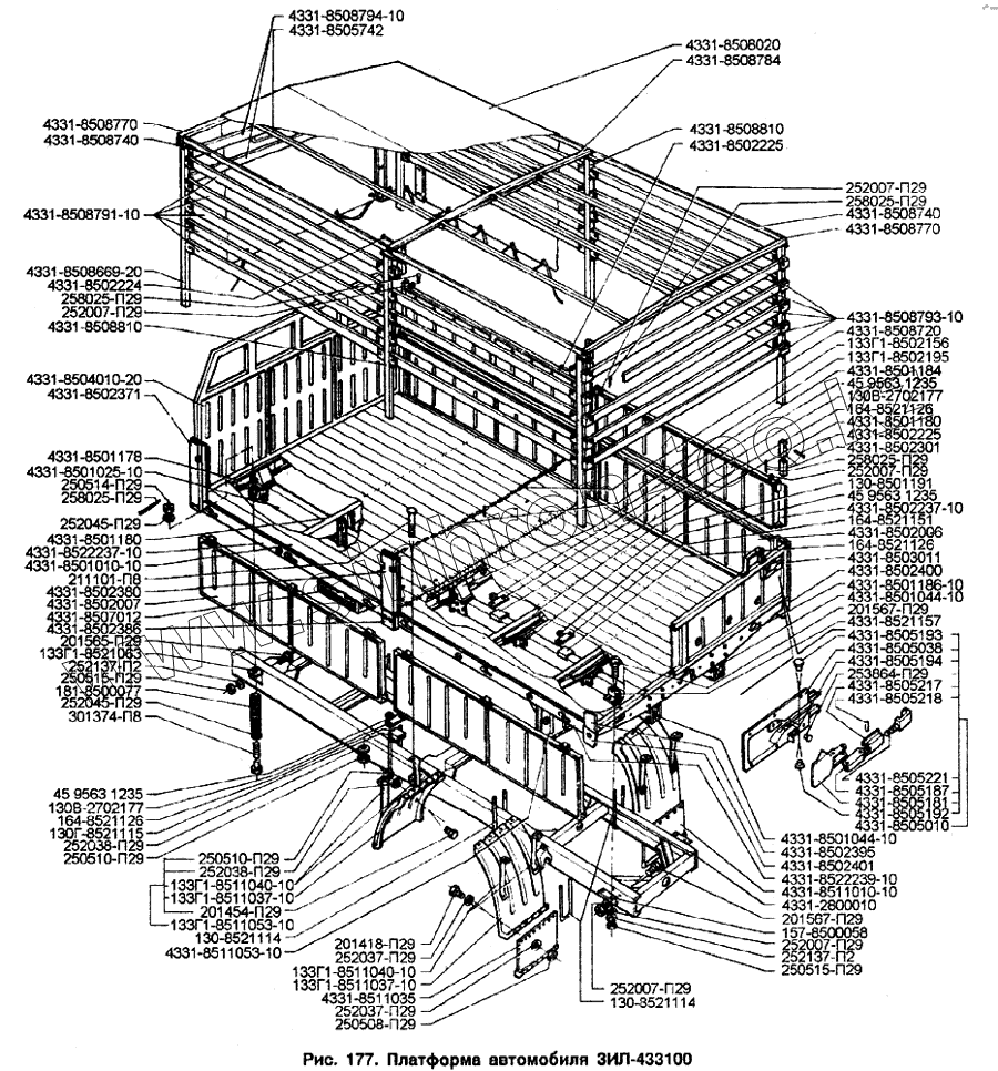 Каталог запасных частей к технике: ЗИЛ-433100. Платформа автомобиля ЗИЛ-433100