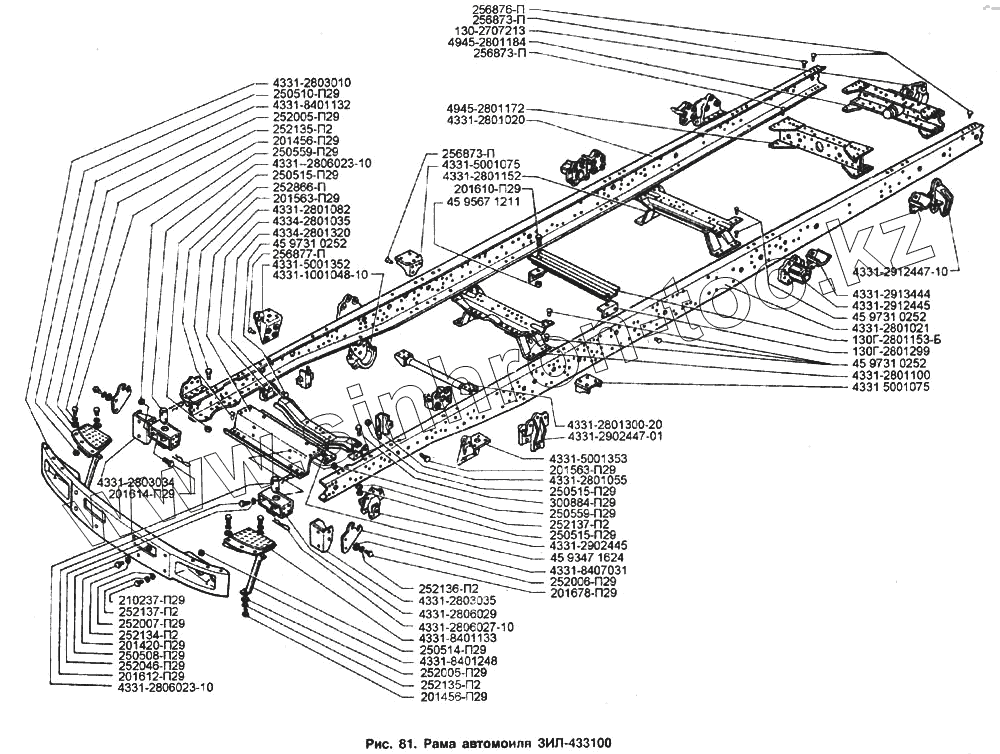 Каталог запасных частей к технике: ЗИЛ-433100. Рама автомобиля ЗИЛ-433100