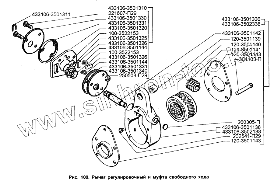 Каталог запасных частей к технике: ЗИЛ-433100. Рычаг регулировочный и муфта свободного хода