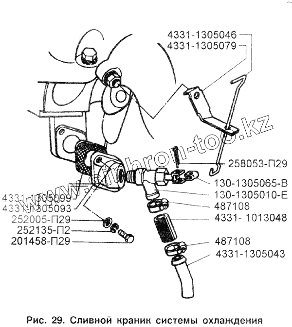 Каталог запасных частей к технике: ЗИЛ-433100. Сливной краник системы охлаждения