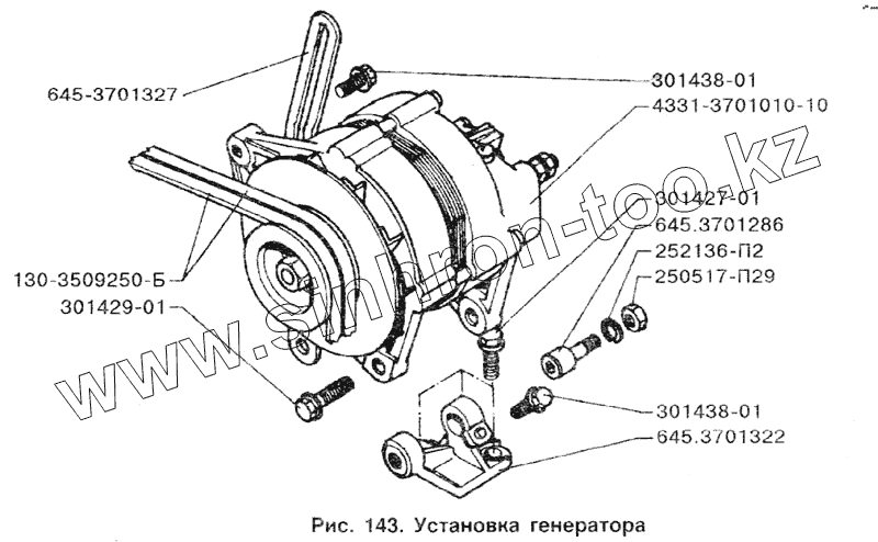 Каталог запасных частей к технике: ЗИЛ-433100. Установка генератора