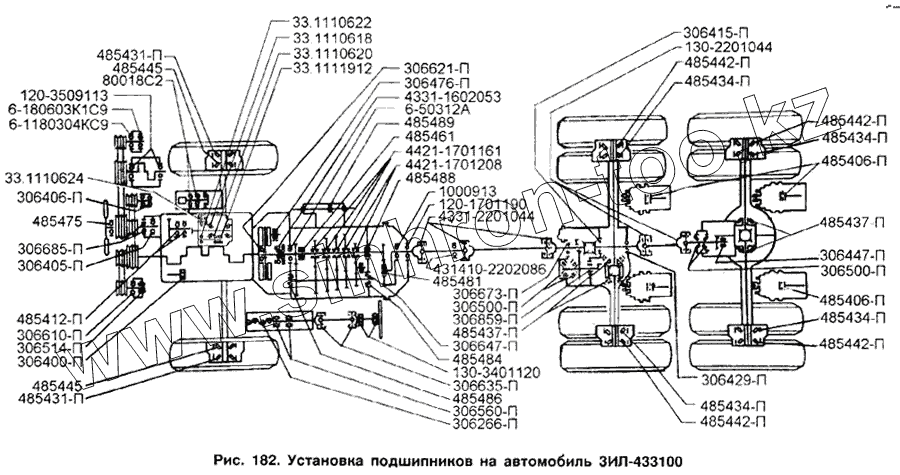 Каталог запасных частей к технике: ЗИЛ-433100. Установка подшипников на автомобиль ЗИЛ-433100