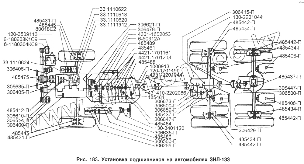 Каталог запасных частей к технике: ЗИЛ-433100. Установка подшипников на автомобилях ЗИЛ-133