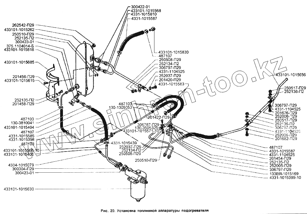 Каталог запасных частей к технике: ЗИЛ-433100. Установка топливной аппаратуры подогревателя