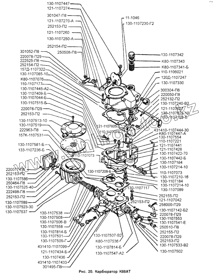 Каталог запасных частей к технике: ЗИЛ-433110. Карбюратор К88АТ