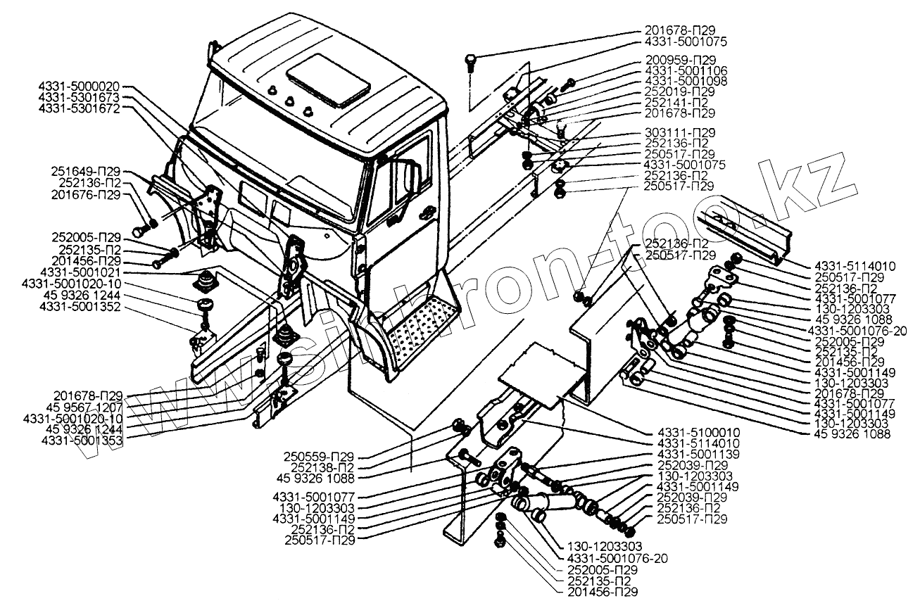 Каталог запасных частей к технике: ЗИЛ-433110. Крепление кабины