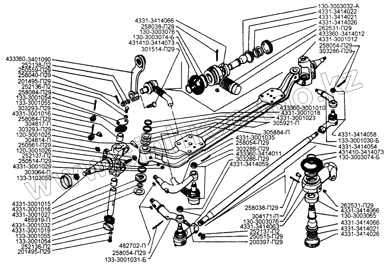 Каталог запасных частей к технике: ЗИЛ-433110. Передняя ось и рулевые тяги