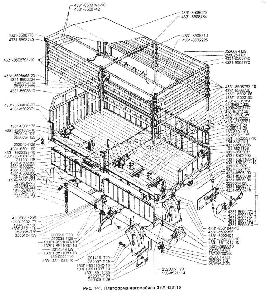 Каталог запасных частей к технике: ЗИЛ-433110. Платформа автомобиля ЗИЛ-433110