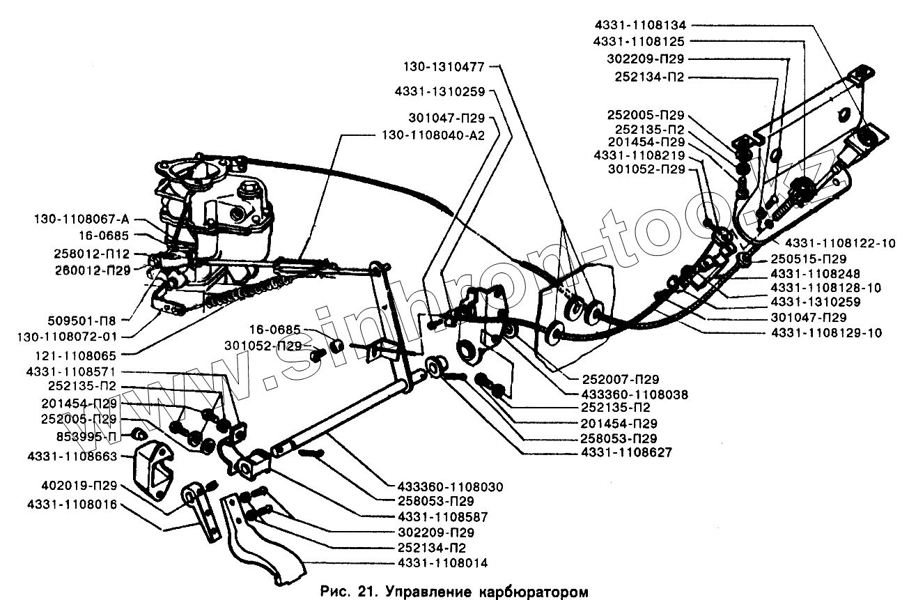 Каталог запасных частей к технике: ЗИЛ-433110. Управление карбюратором