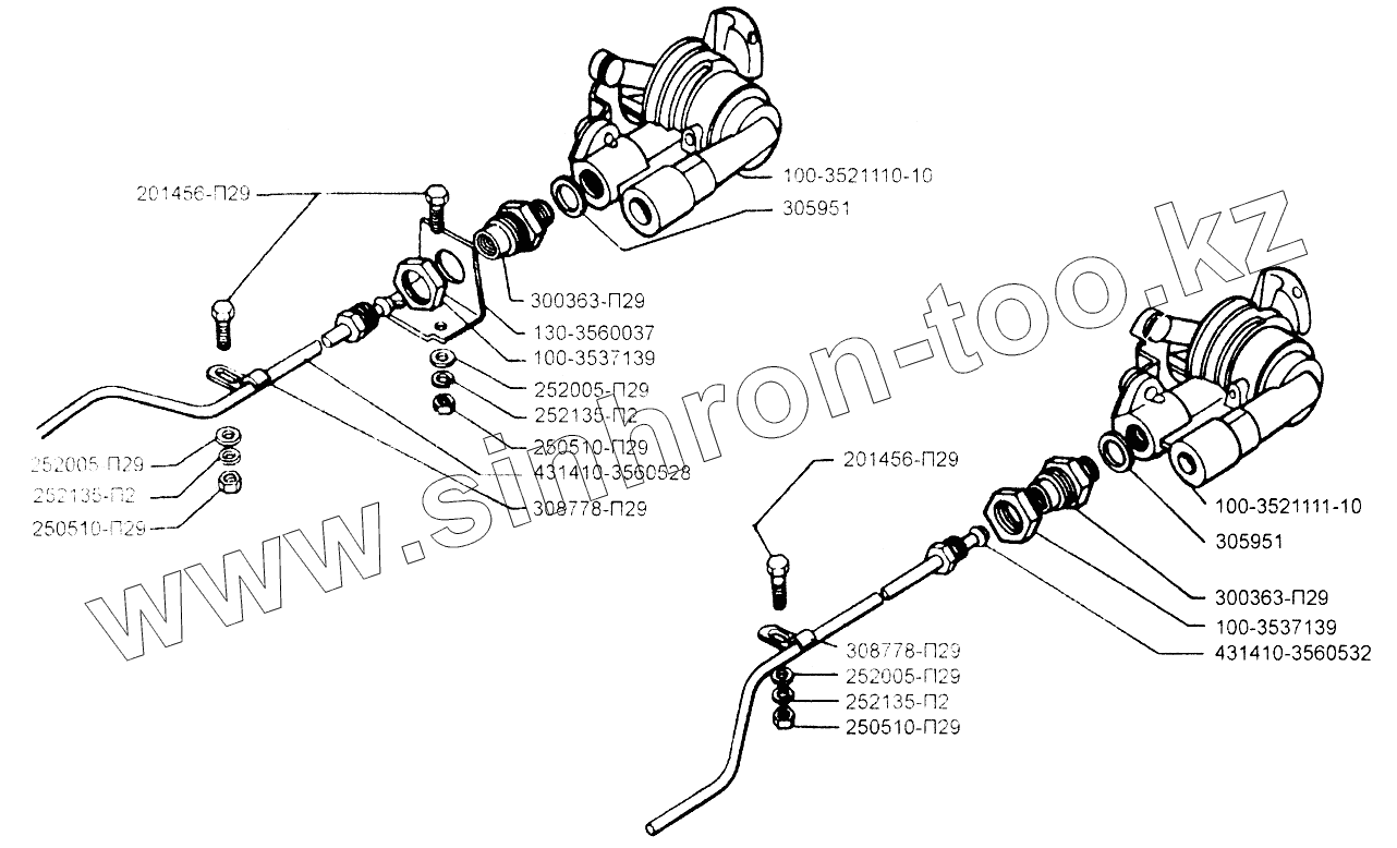 Каталог запасных частей к технике: ЗИЛ-433110. Установка соединительных головок