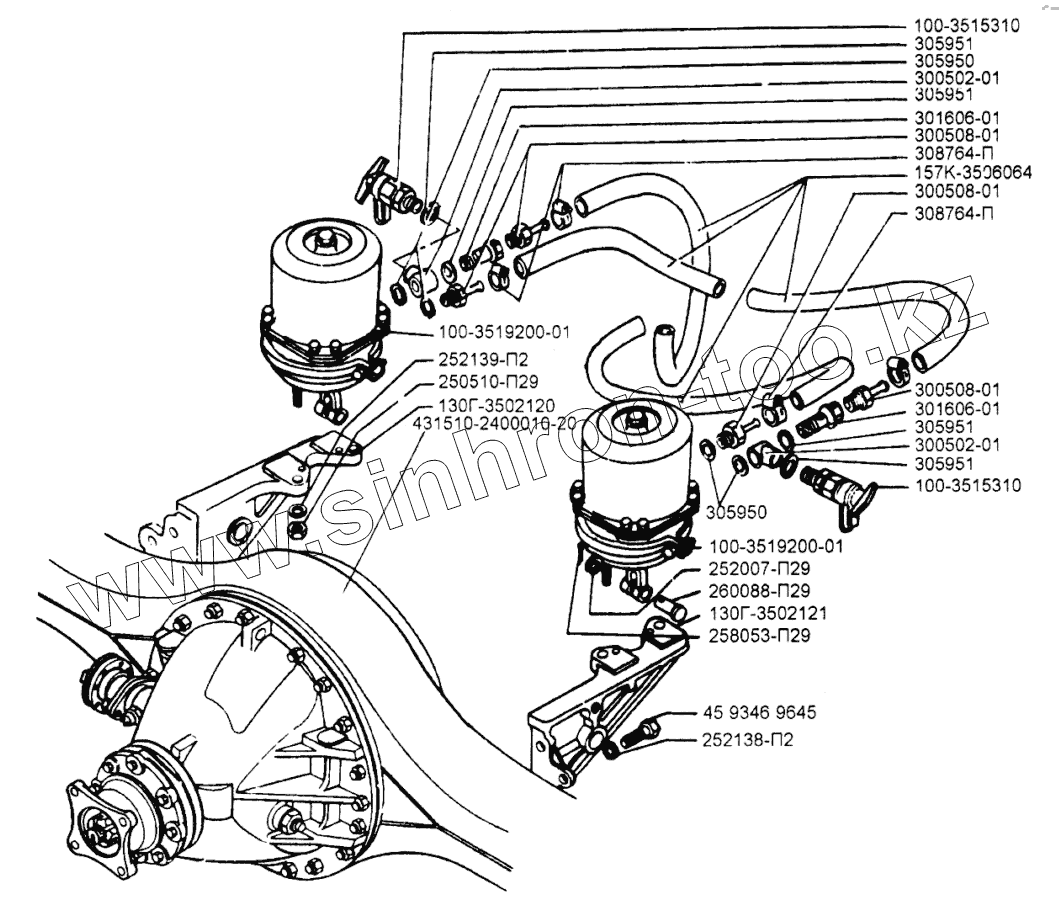 Каталог запасных частей к технике: ЗИЛ-433110. Установка задних тормозных камер