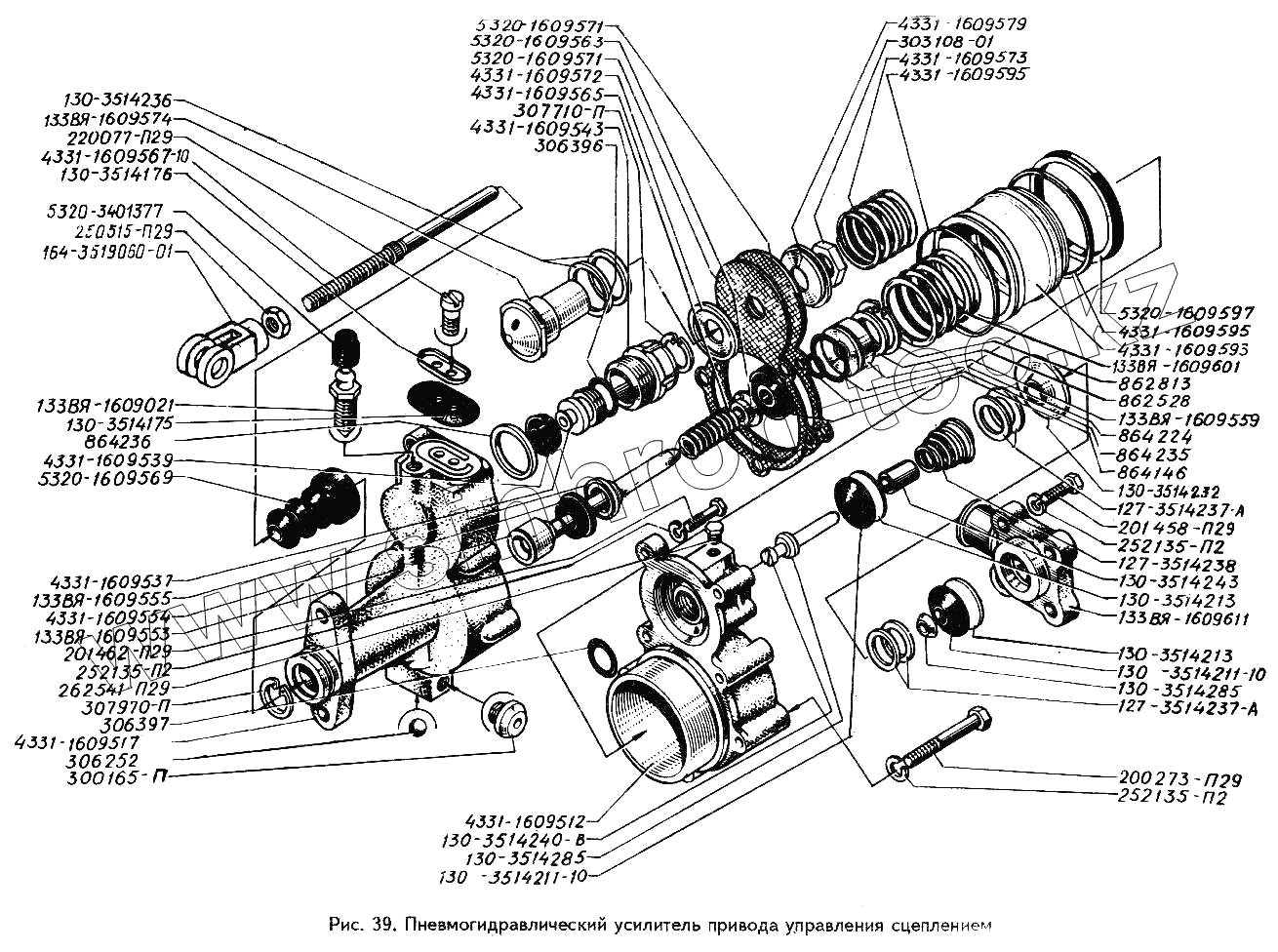 Каталог запасных частей к технике: ЗИЛ-433360. Пневмогидравлический усилитель привода управления сцеплением