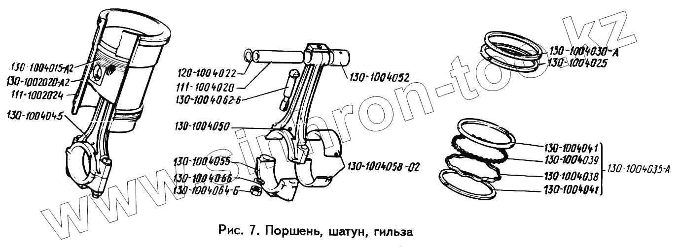 Каталог запасных частей к технике: ЗИЛ-433360. Поршень, шатун, гильза