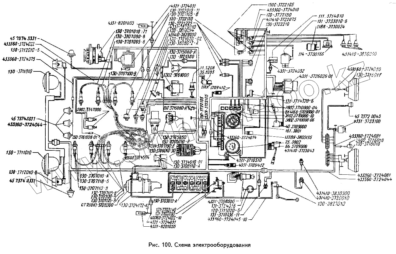 Каталог запасных частей к технике: ЗИЛ-433360. Схема электрооборудования