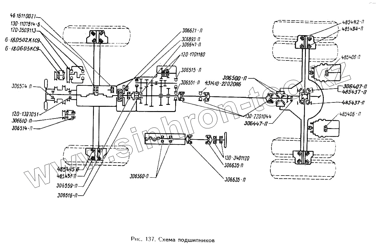 Каталог запасных частей к технике: ЗИЛ-433360. Схема подшипников